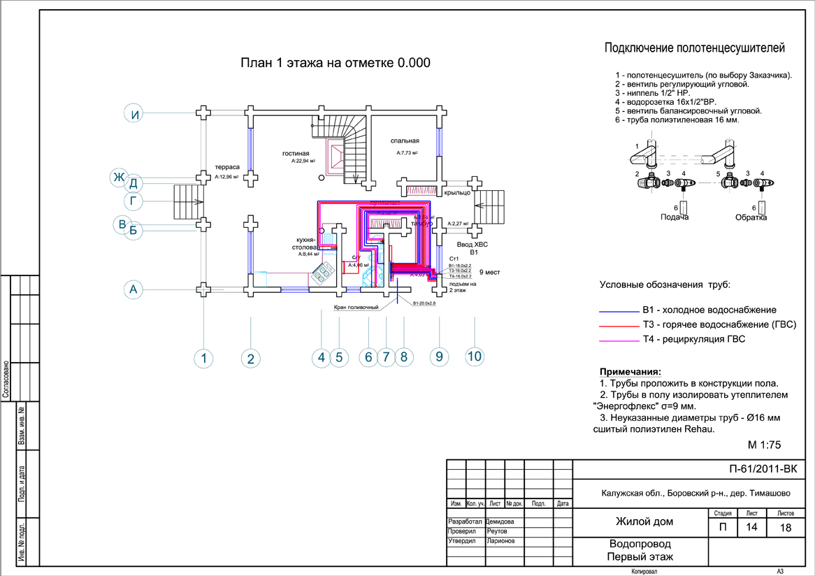 Состав проекта топления, водоснабжения и канализации дома в Калужской области: