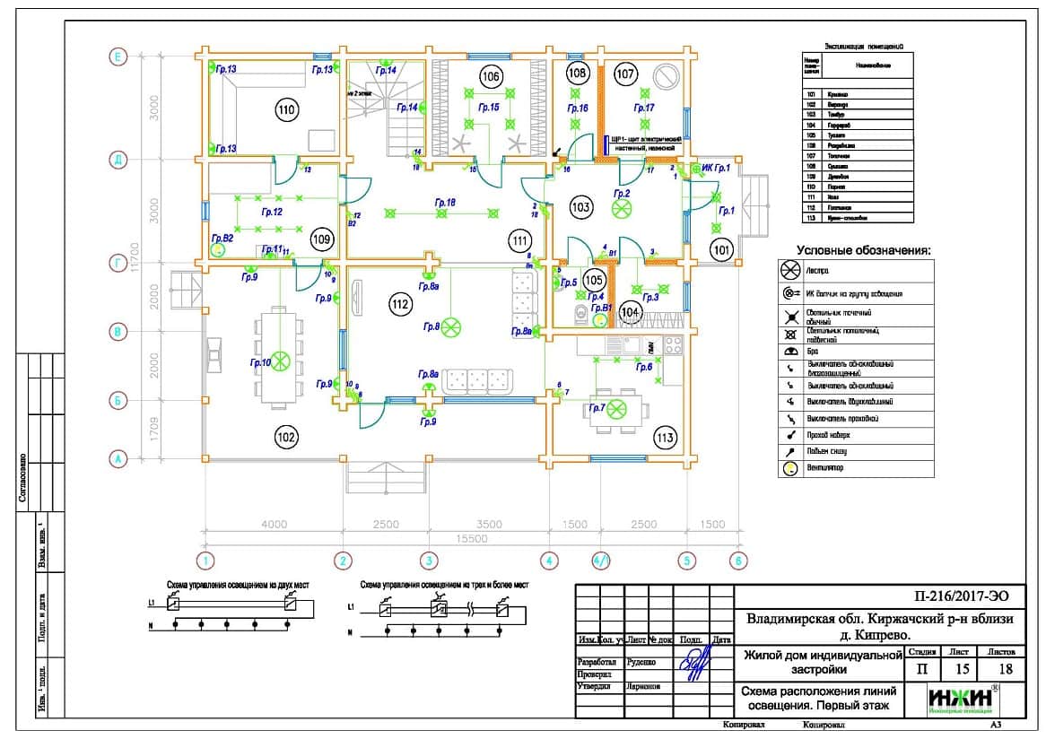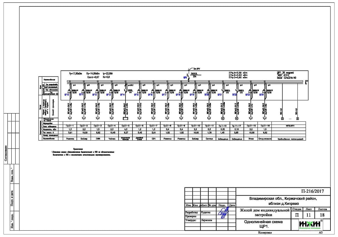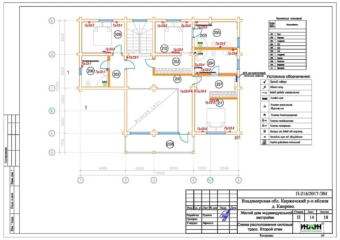 Проект электрики частного дома из бруса площадью 209 м.кв. во Владимирской области