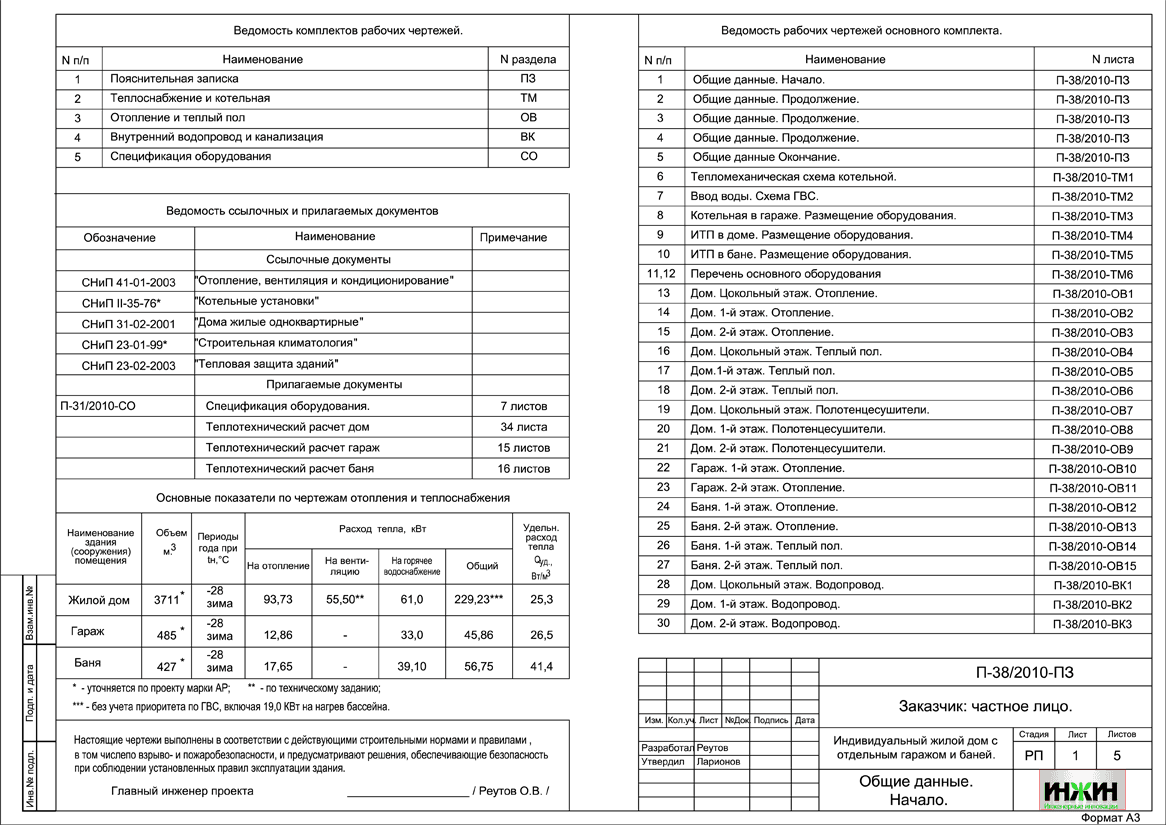 Состав проекта отопления, водоснабжения и канализации дома в КП "Антоновка":