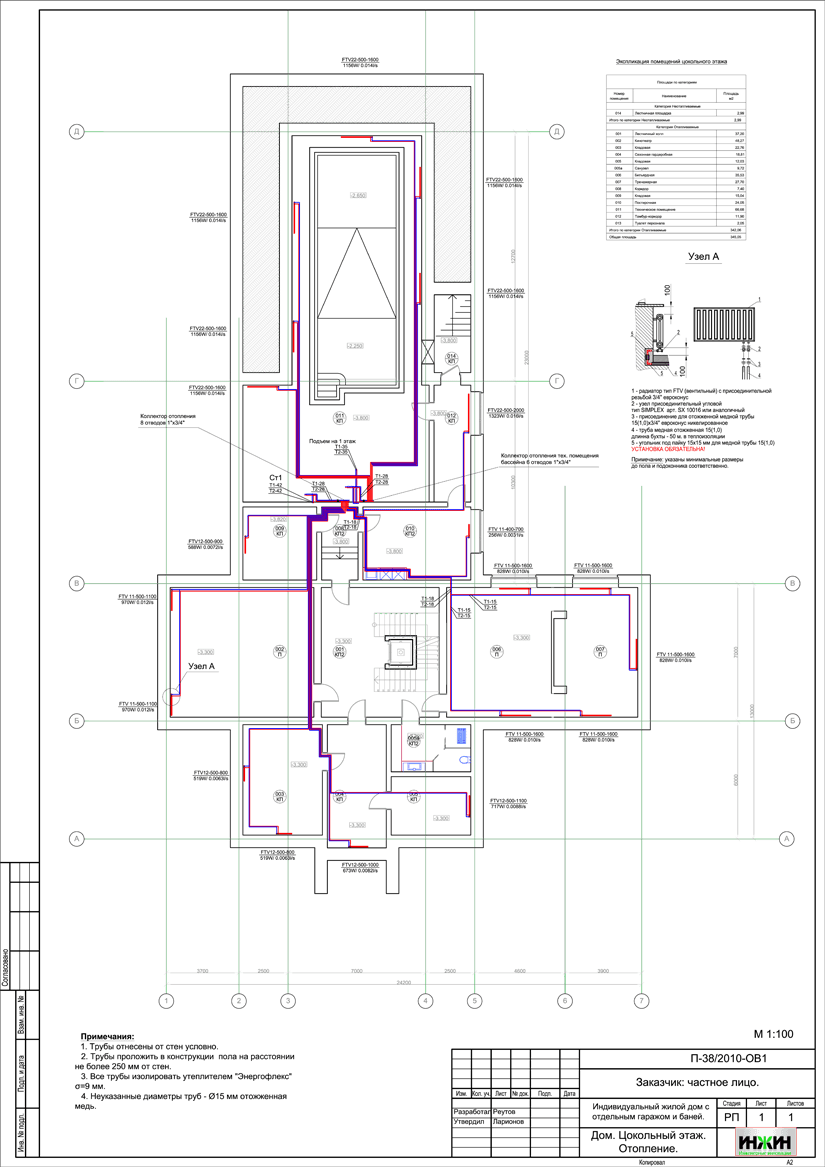 Проект отопления дома с баней и гаражом 1 284 м.кв.