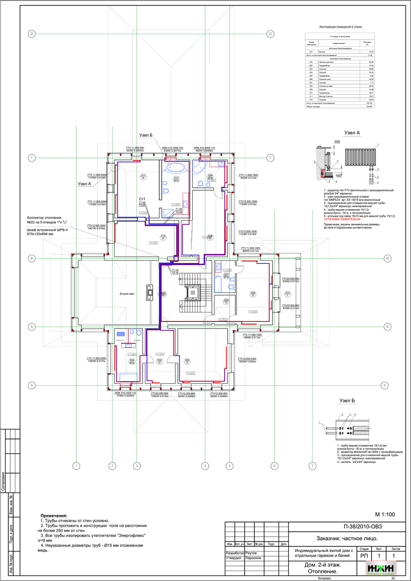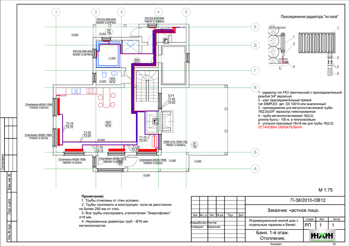 8. Комплект чертежей радиаторного отопления и теплого пола жилого дома.