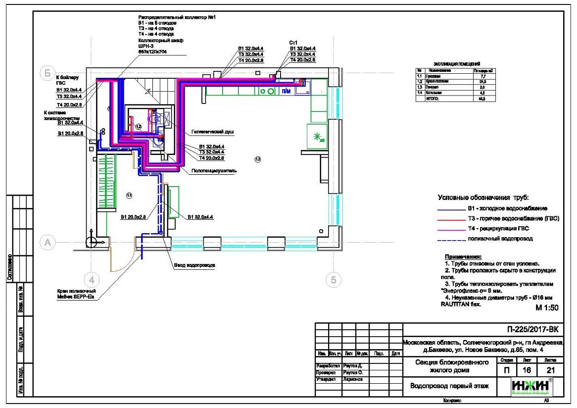 Проект отопления, водоснабжения и канализации таунхауса 133 м.кв.