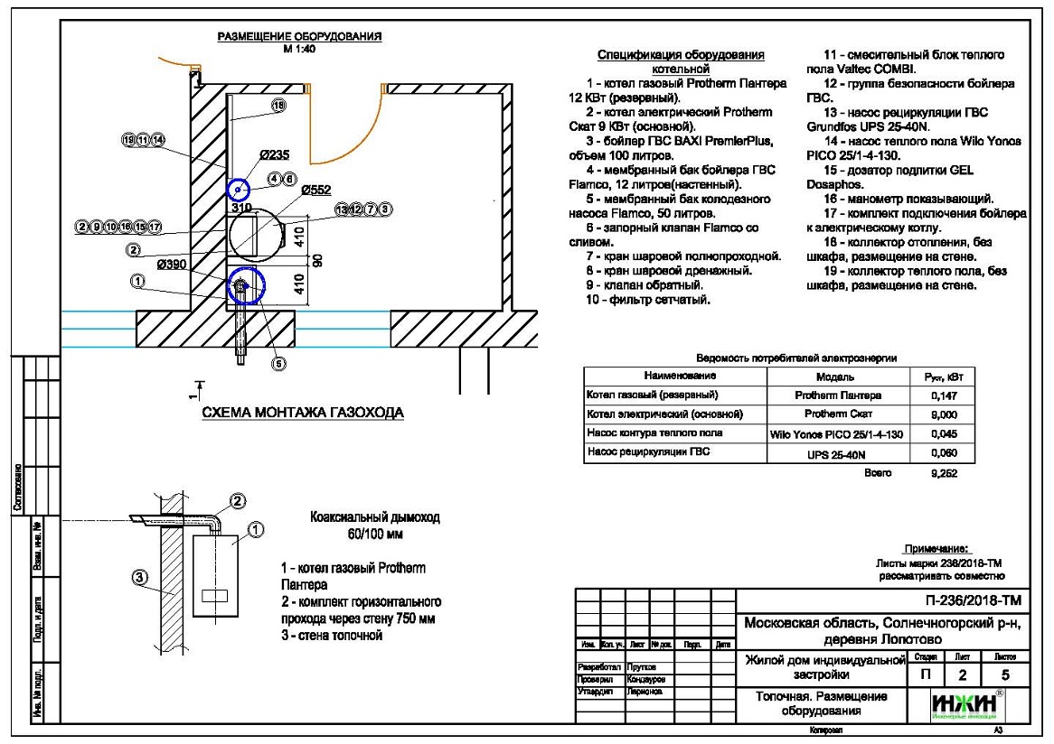 Состав проекта котельной отопления и водоснабжения загородного дома: