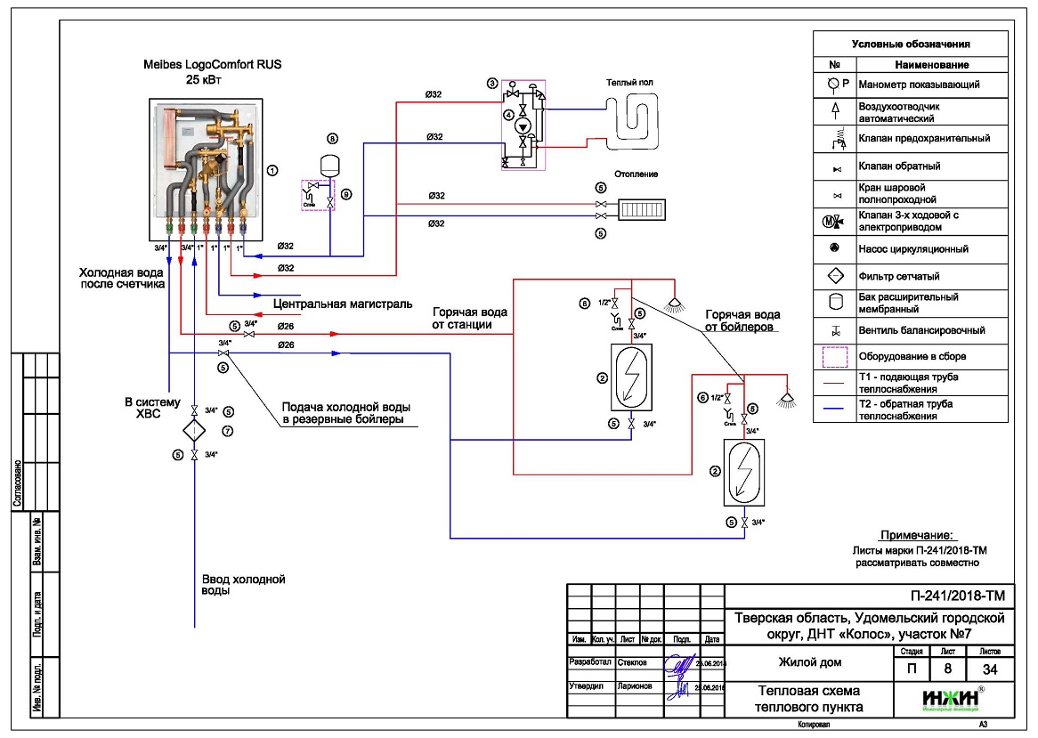 Состав проекта теплового пункта отопления, водоснабжения и канализации дома: