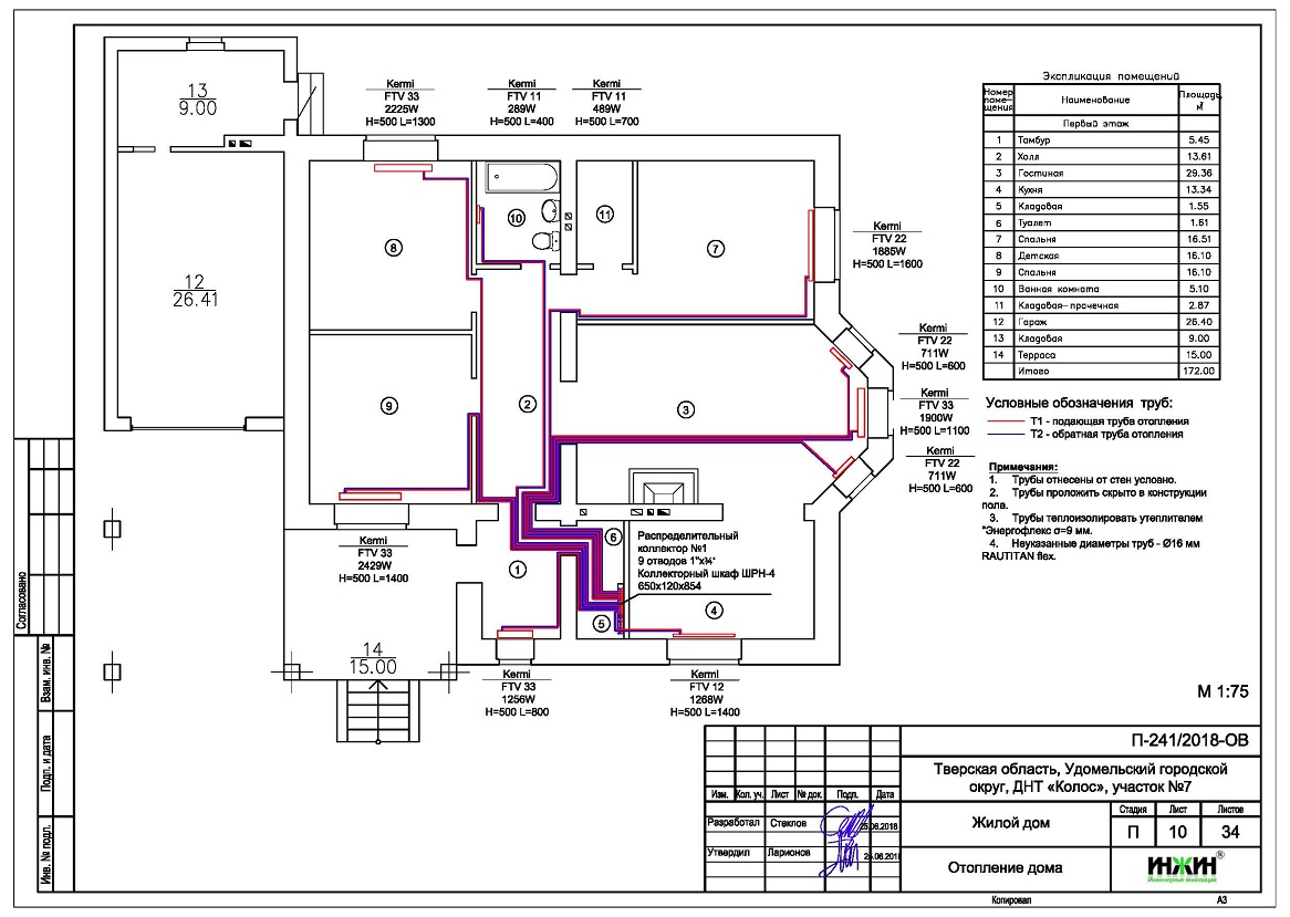 Проект отопления для дома площадью 154 м.кв. в Тверской области