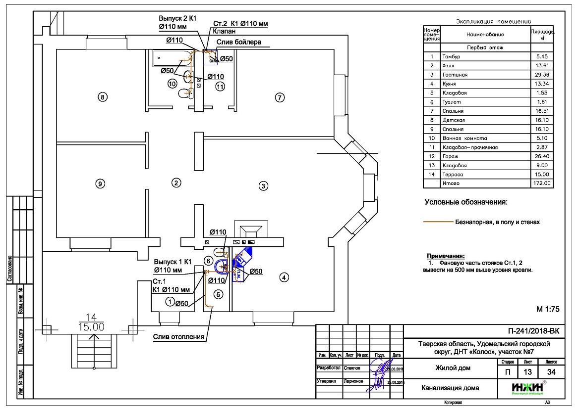 Проект теплового пункта, отопления, водоснабжения и канализации выполнен: 24.07.2018