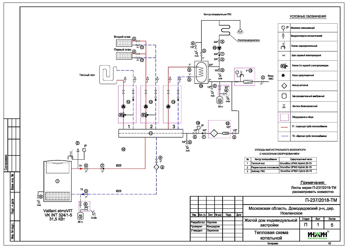 Описание проекта отопления и котельной загородного дома площадью 268 м.кв. в дер. Новленское.