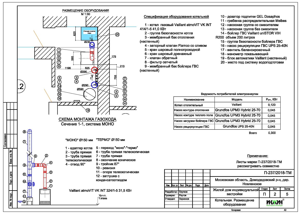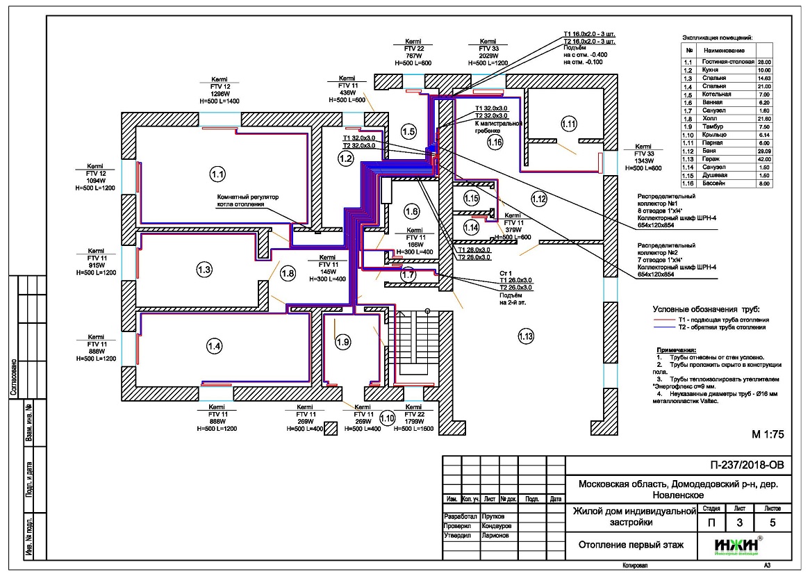 Состав проекта котельной и отопления дома в Домодедовском районе: