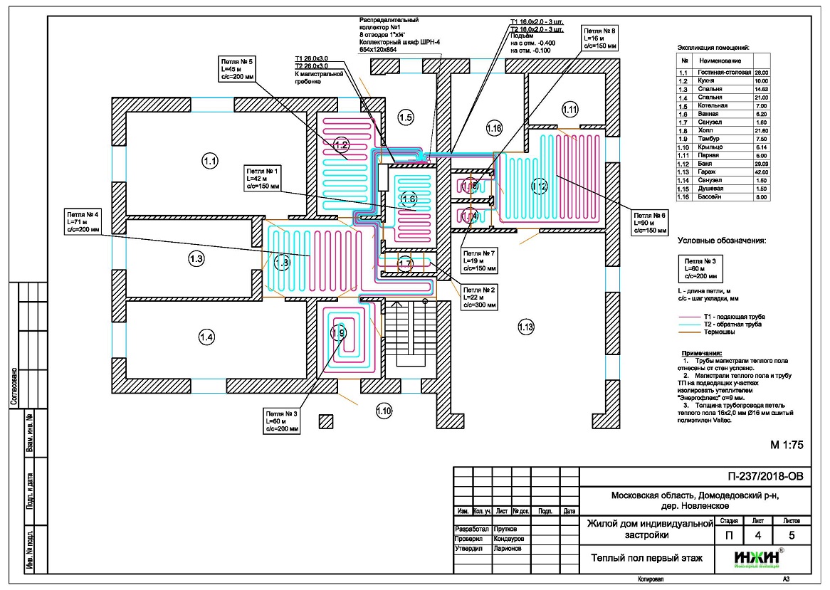 4. Комплект чертежей водяного теплого пола первого этажа дома.
