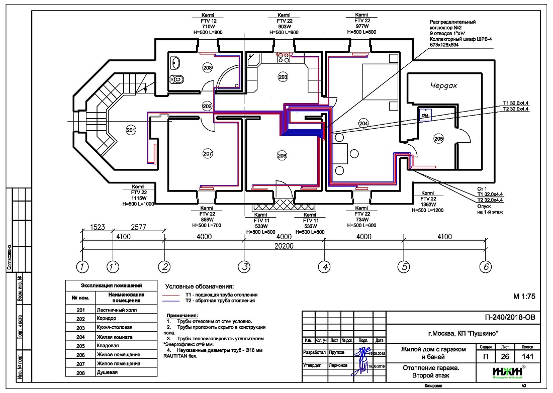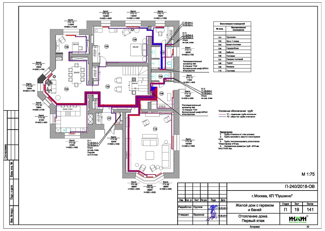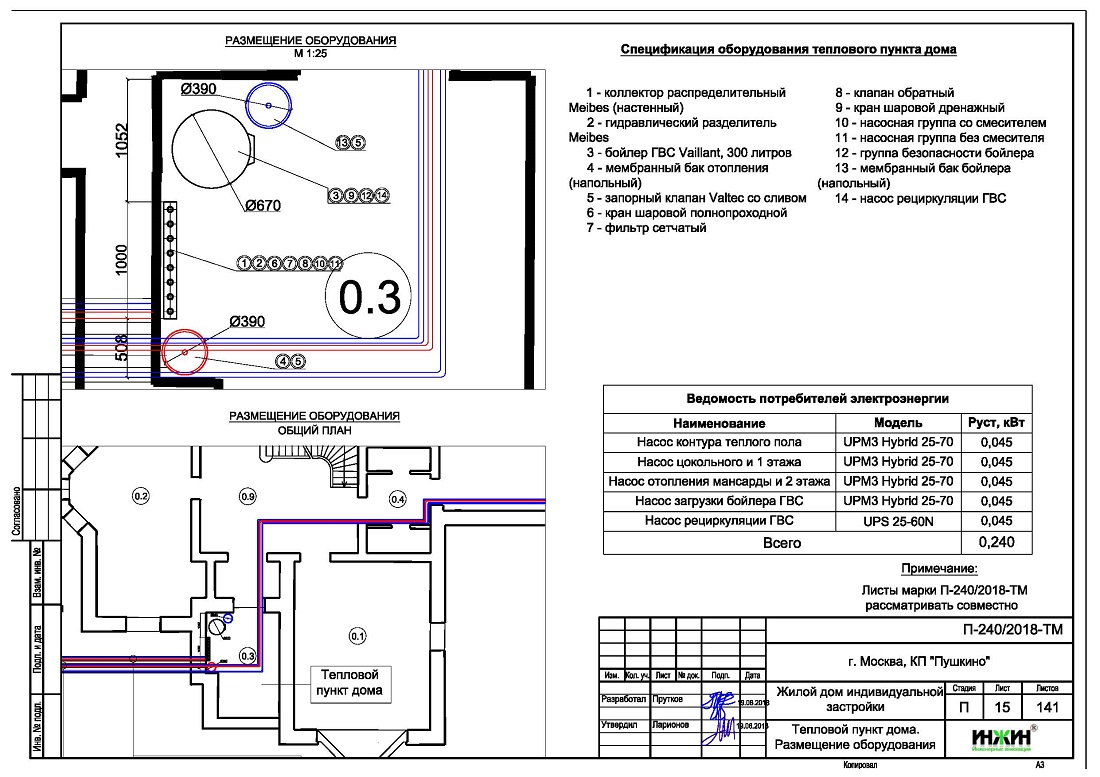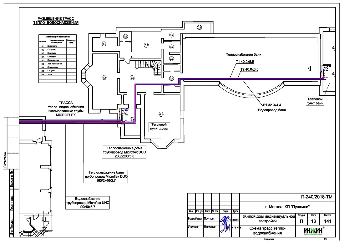 Описание проекта отопления, котельной, тепловых пунктов, водоснабжения и канализации частного дома, гаража и бани в КП «Пушкино».