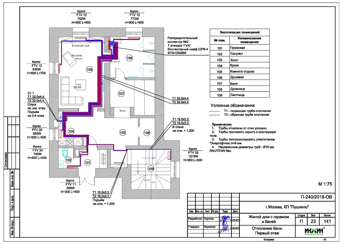 Проект отопления дома 1163 м.кв. с гаражом и баней