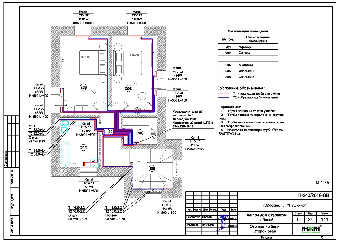 5. Комплекты поэтажных чертежей радиаторного отопления дома, гаража и бани.