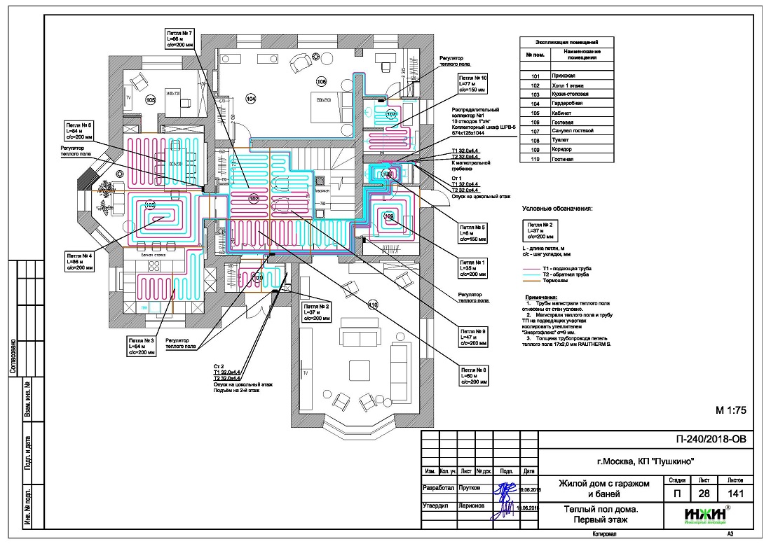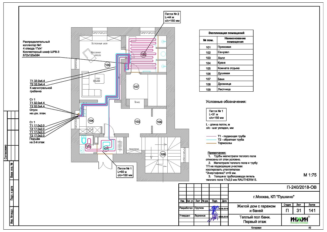 6. Комплекты чертежей водяного теплого пола дома и бани.