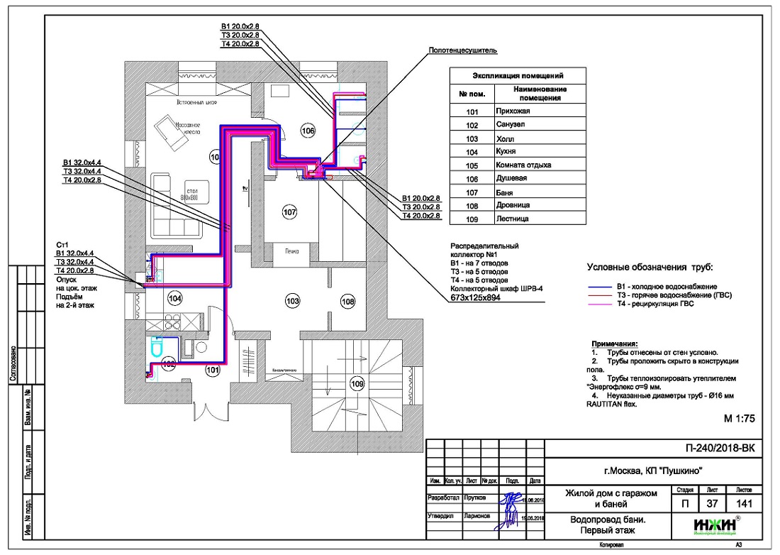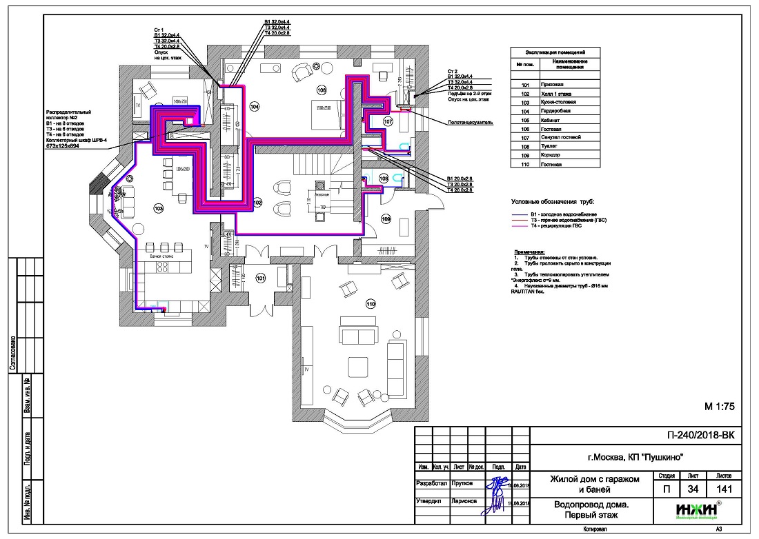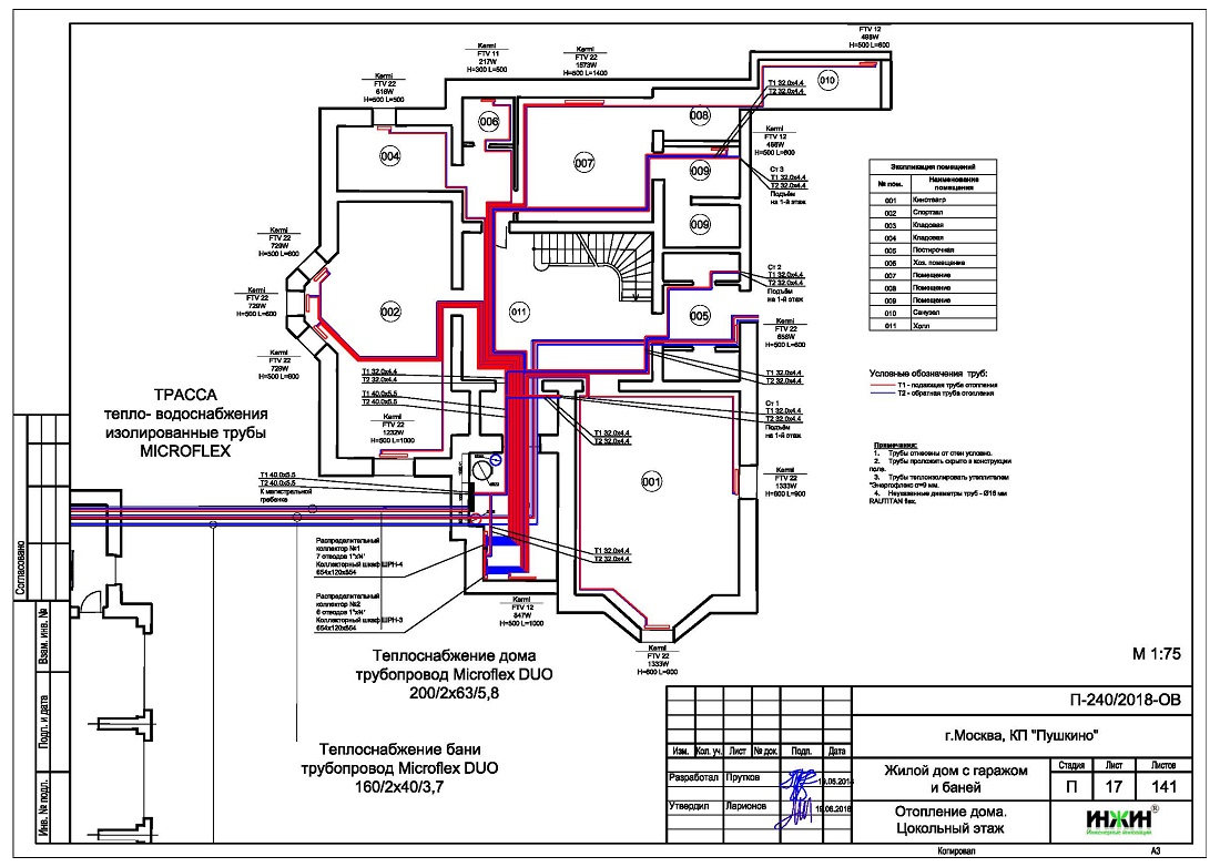 Состав проекта котельной отопления, водоснабжения и канализации трех строений –дома, гаража и бани: