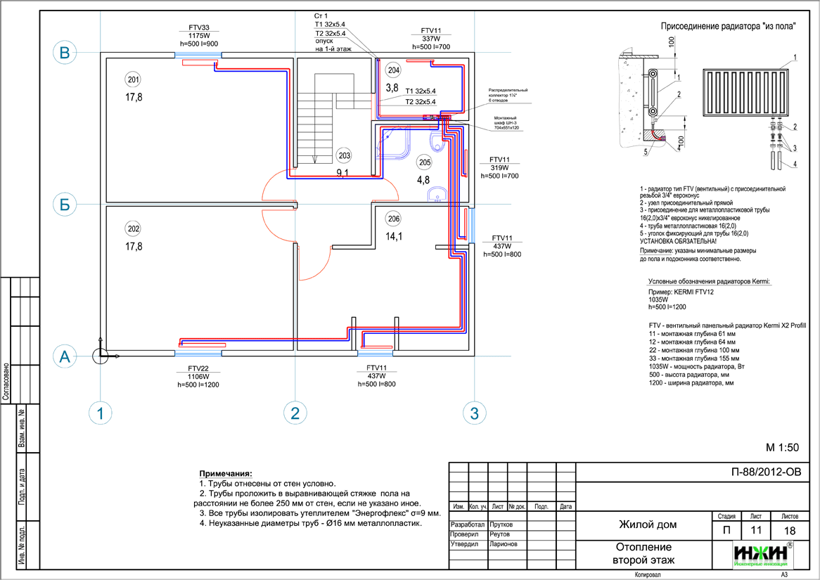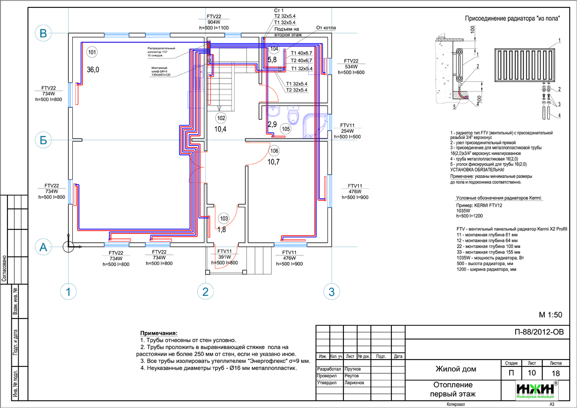 4. Комплект чертежей радиаторного отопления загородного дома.