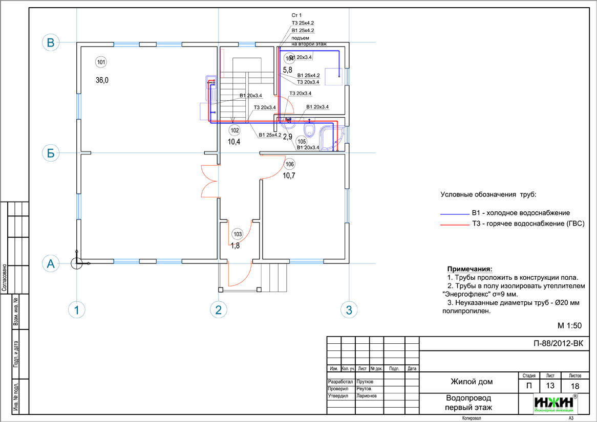 Проект отопления, водоснабжения и канализации выполнен: 12.05.2012г.