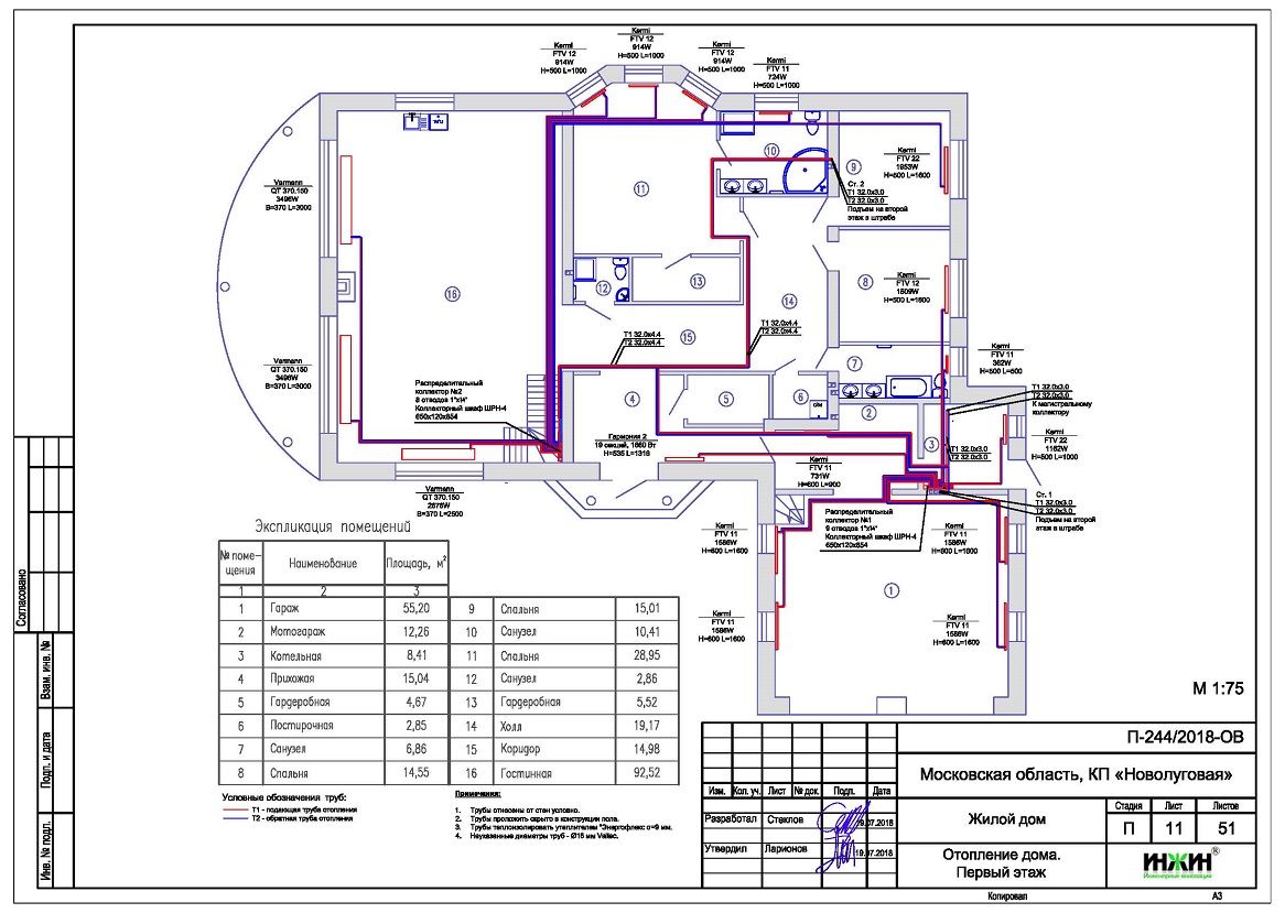 Проект отопления дома 421 м.кв. в КП «Новолуговая»