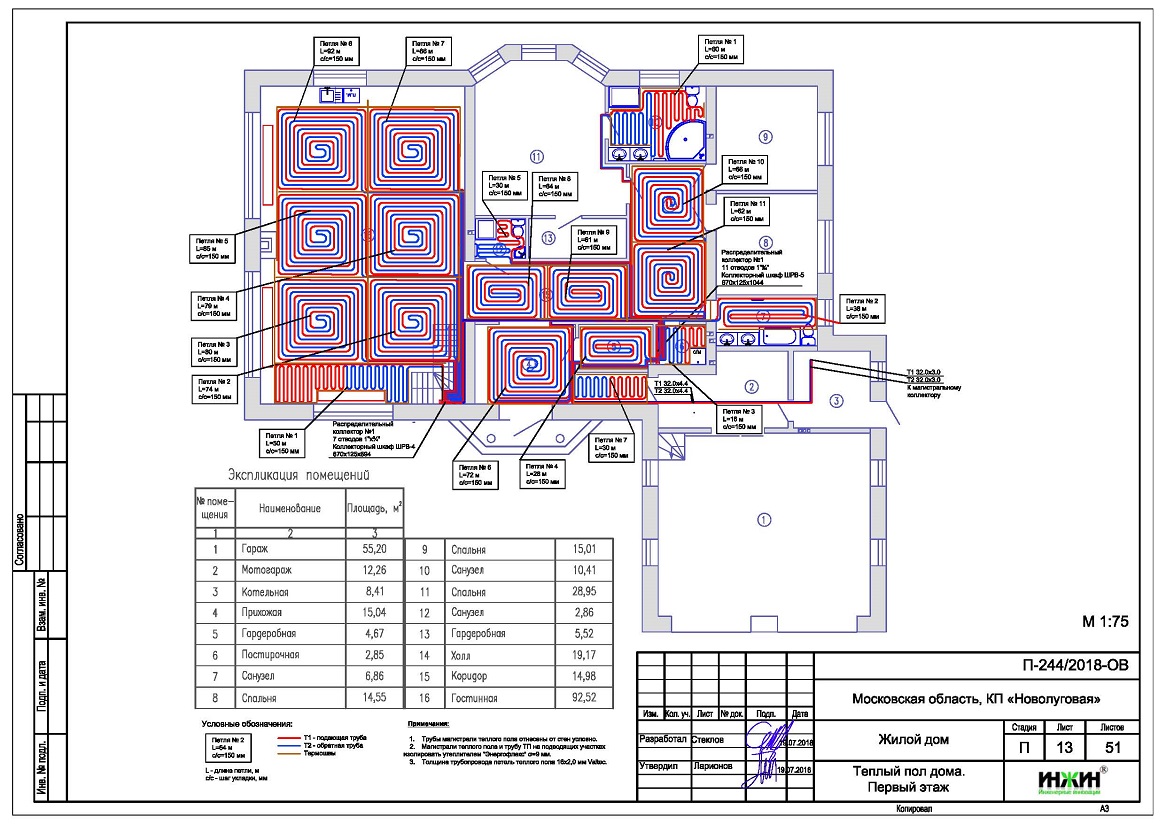 4. Комплект чертежей водяного теплого пола на 1 этаже частного дома из Поротерма.