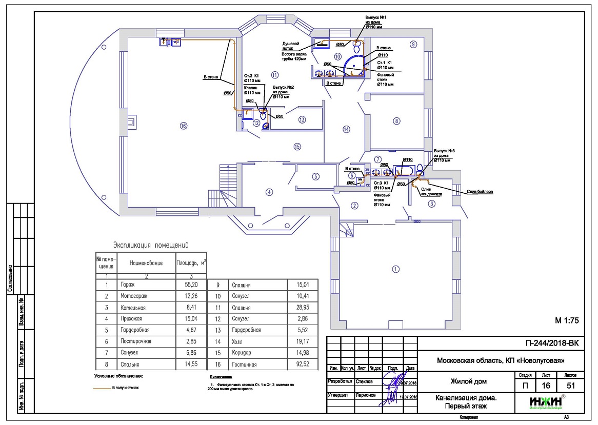 Объем проекта отопления, водопровода и канализации: 51 лист.