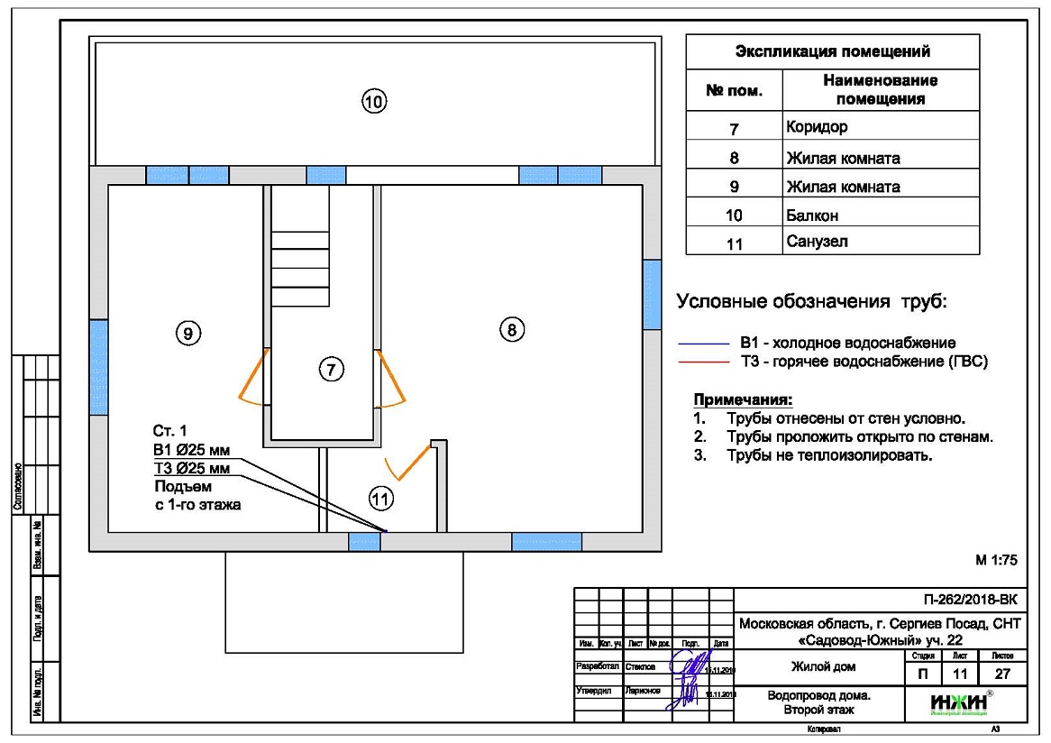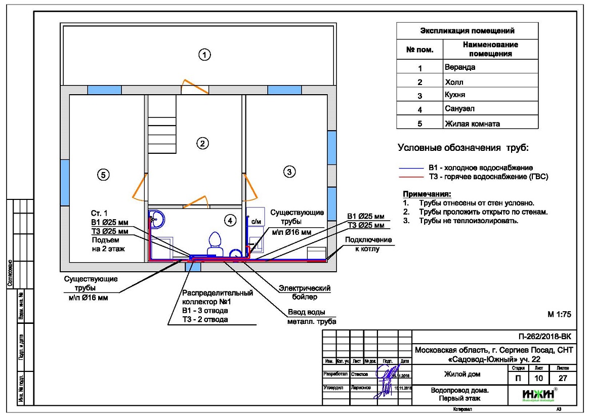 o Схема внутреннего водопровода дома – тройниковая тупиковая, без рециркуляции горячей воды;