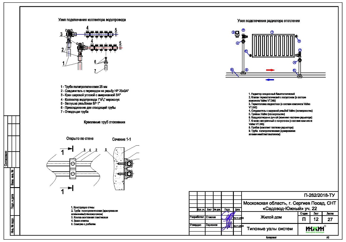 Состав проекта котельной, отопления и водоснабжения дома в г. Сергиев Посад: