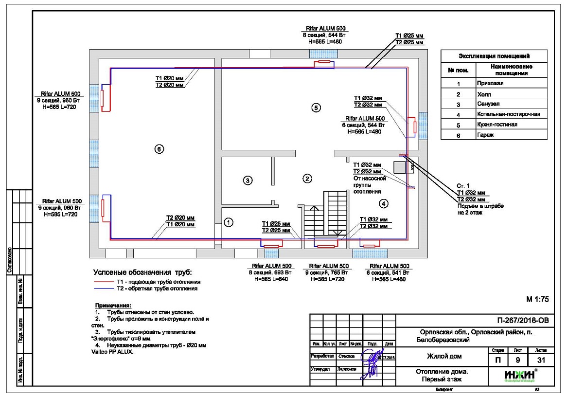 1. Пояснительная записка проекта, общие данные по системам отопления и теплого пола дома 171 м.кв. в Орловской области.