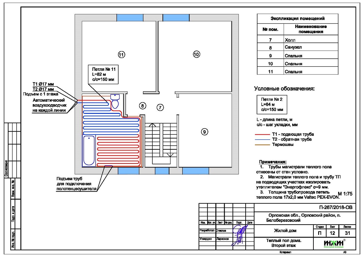 Водяной теплый пол дома (проект теплого пола дома в Орловской области).