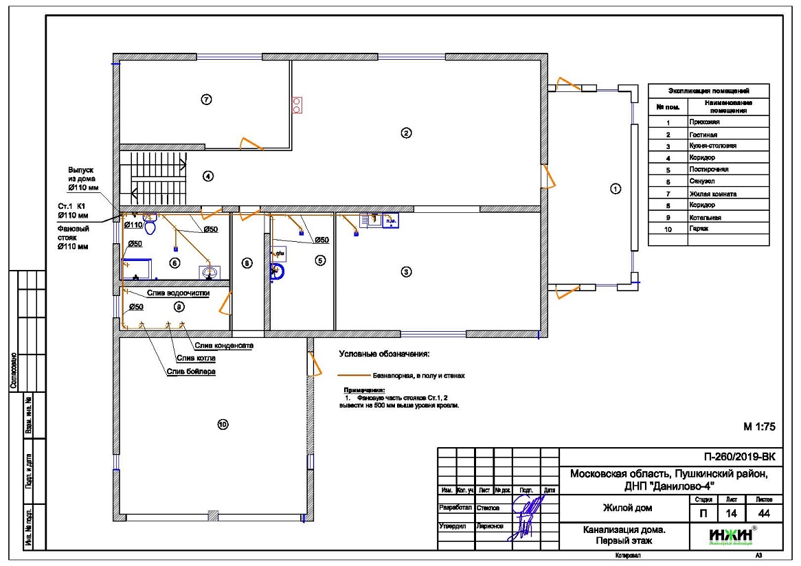 Описание проекта отопления, котельной, канализации и водоснабжения частного дома 436 м.кв. в ДНП "Данилово".