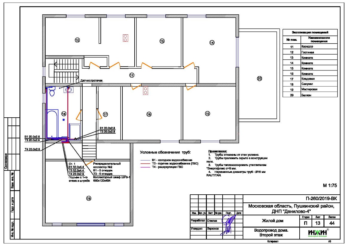 4. Комплект чертежей водоснабжения и канализации частного дома из газосиликатных блоков.