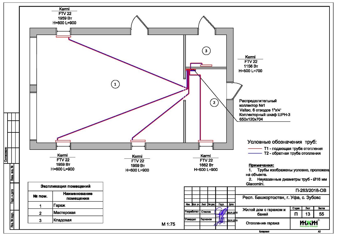 3. Комплект поэтажных чертежей радиаторного отопления дома и гаража в Уфе.
