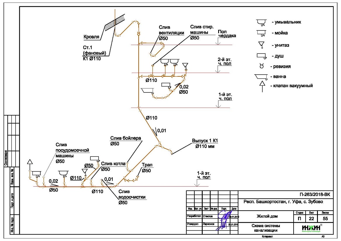 Внутренняя канализация (проект канализации) дома.