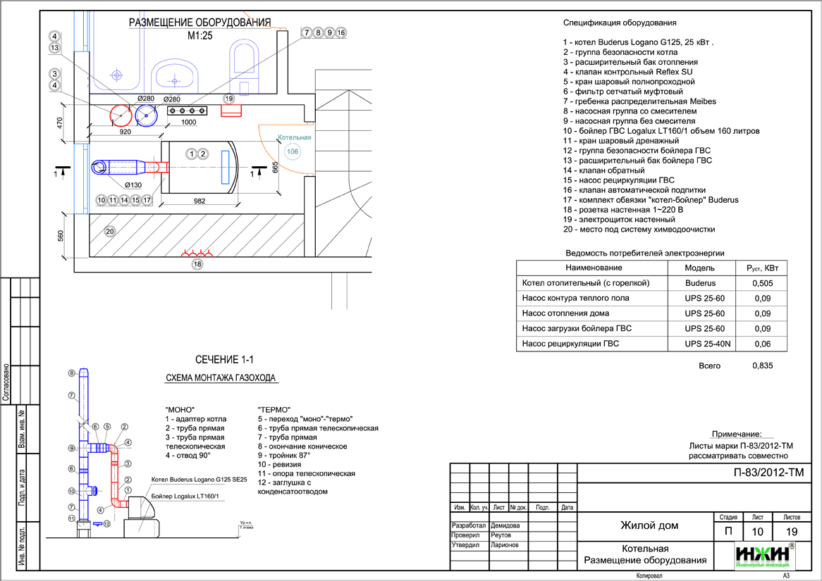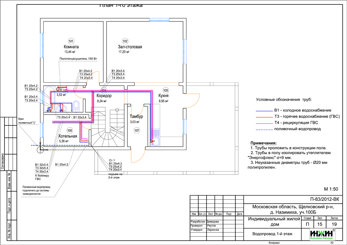 Состав проекта отопления, водоснабжения и канализации загородного дома в дер. Назимиха Московской области: