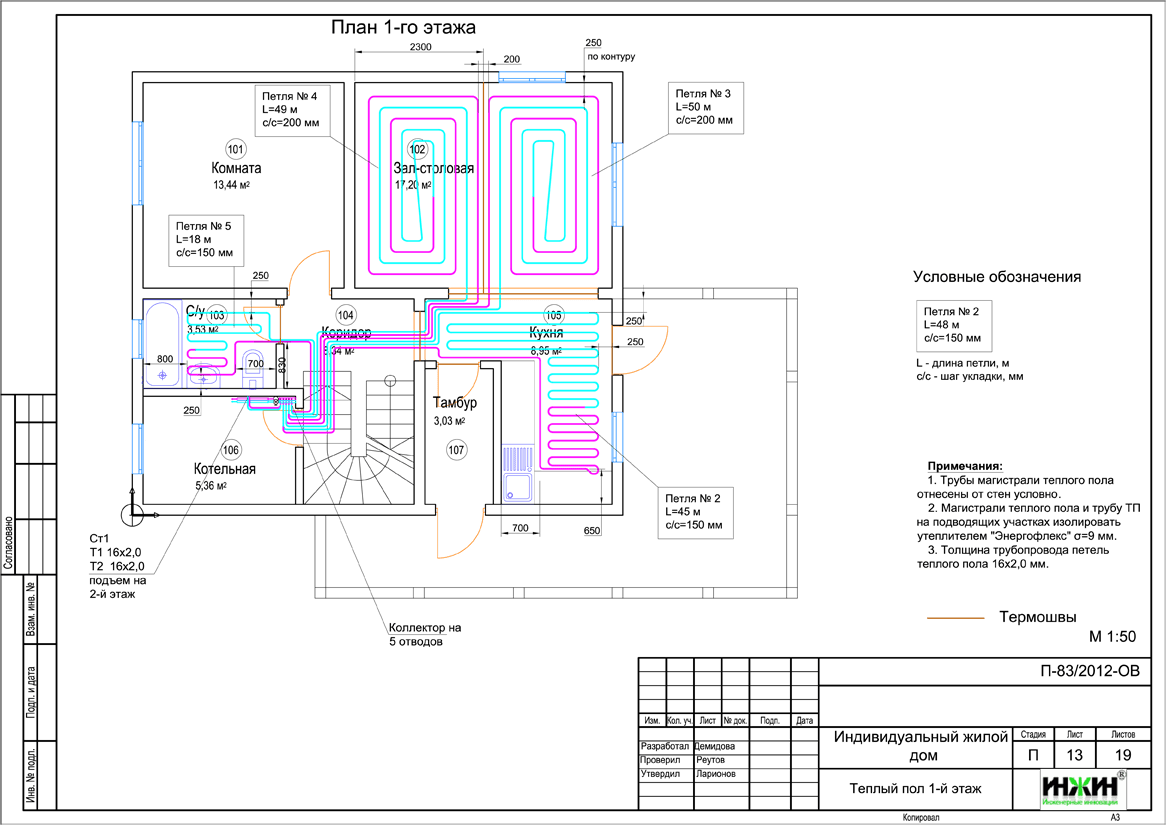 Водяной теплый пол (проект теплого пола) дома в дер. Назимиха.