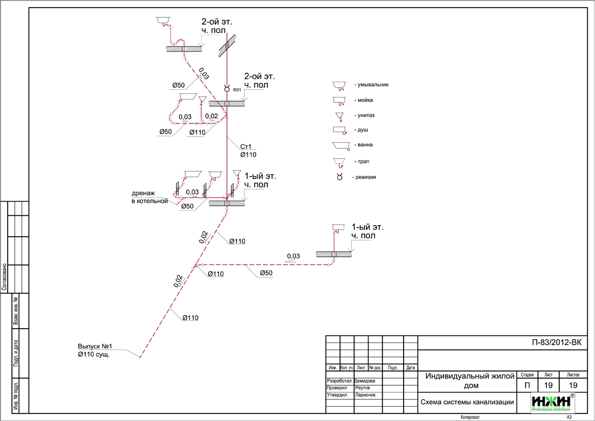 5. Комплект рабочих чертежей внутреннего водопровода и канализации жилого дома в дер. Назимиха.