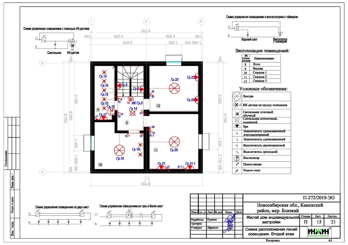 4. Чертежи групповых осветительных сетей дома в Новосибирске.