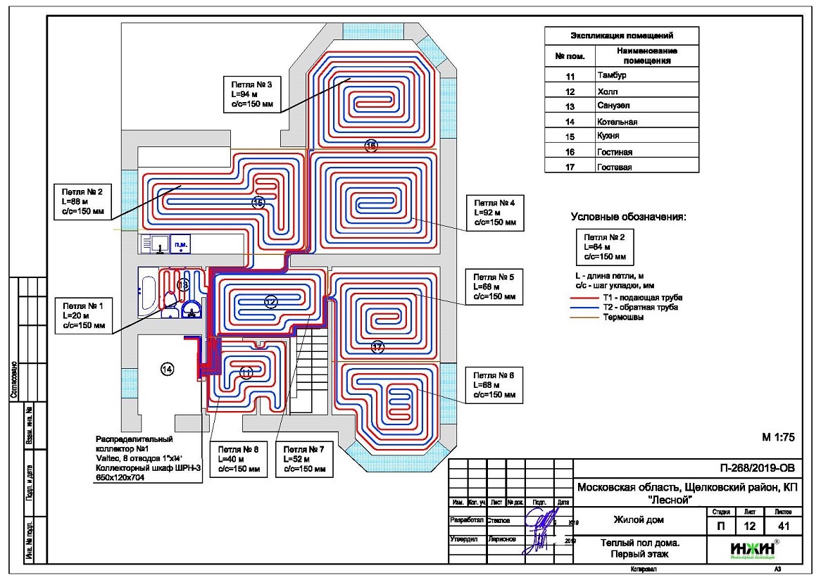 Водяной теплый пол дома КП «Лесной» (проект теплого пола).