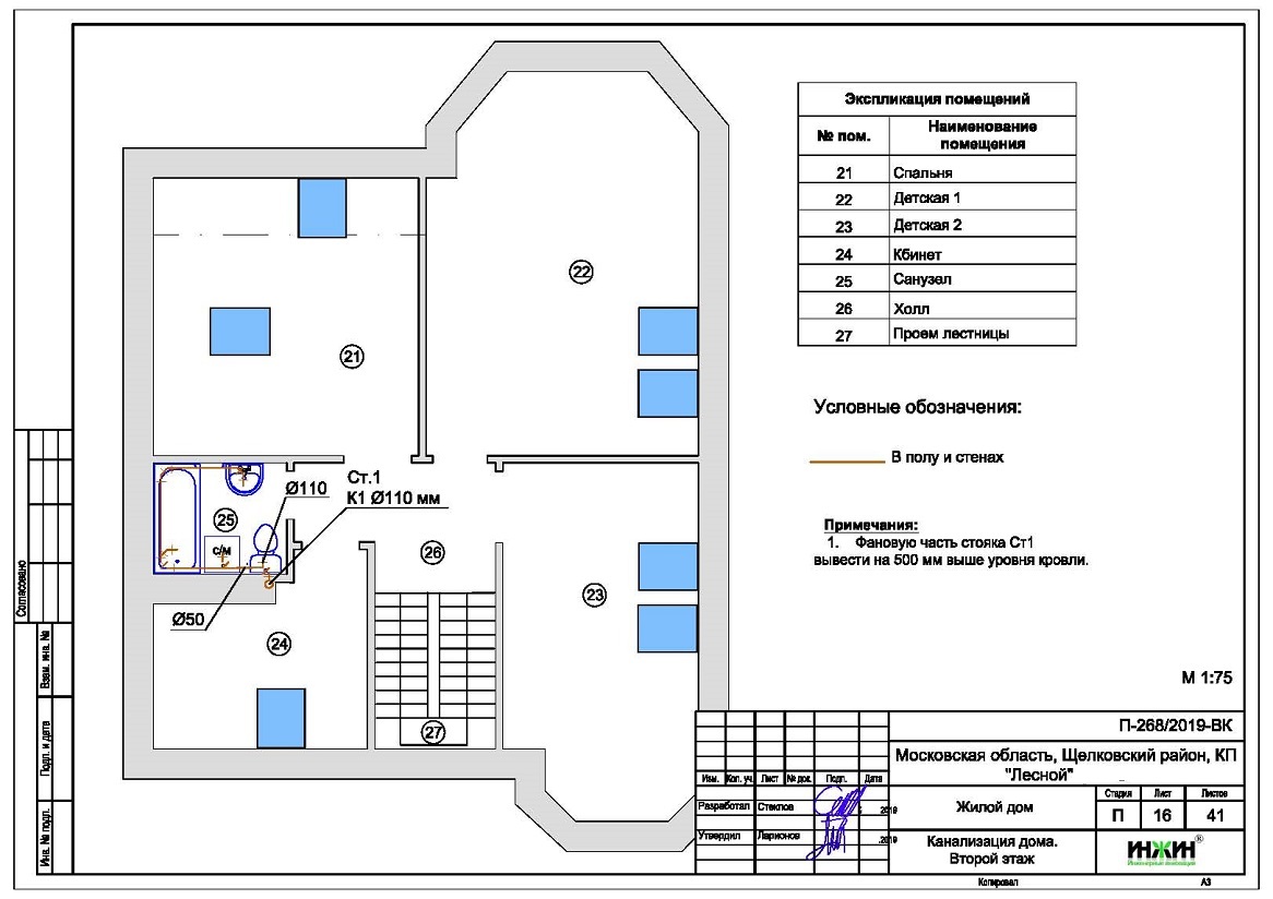 Объем проекта отопления, канализации и водоснабжения кирпичного дома: 41 лист.