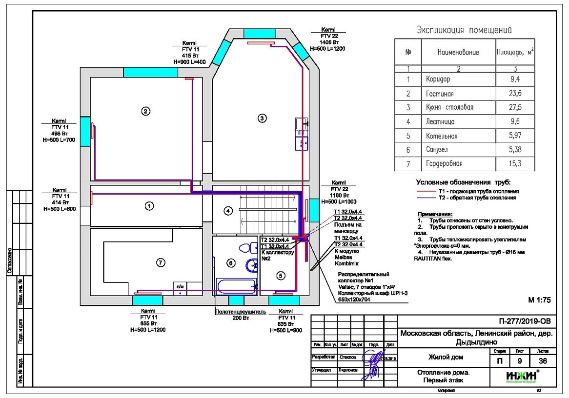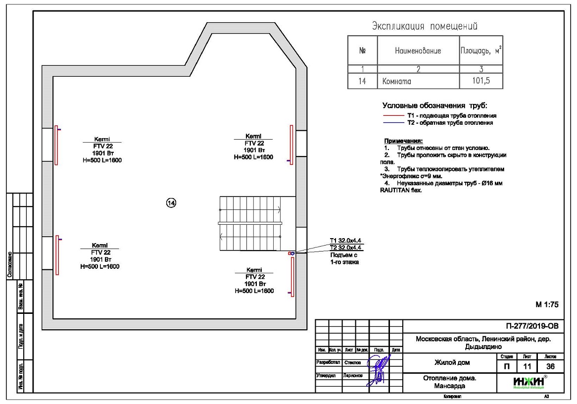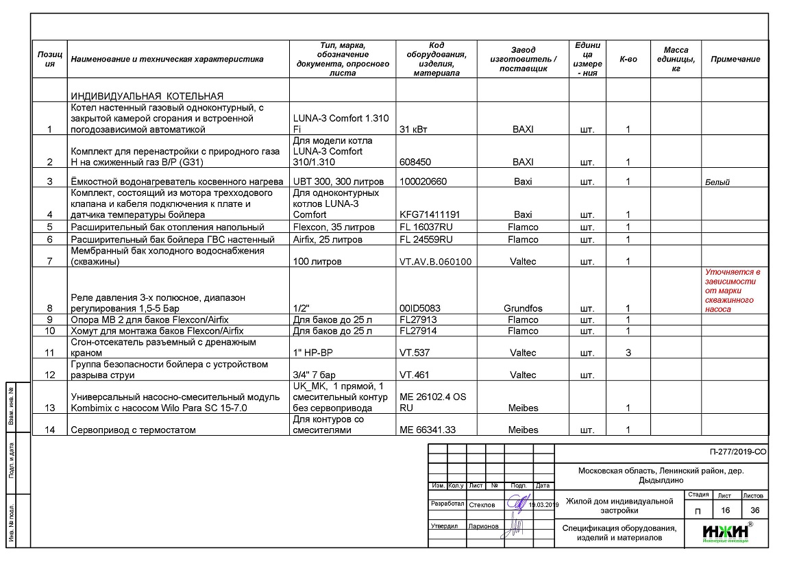 Объем проекта отопления и водоснабжения кирпичного дома: 36 листов.