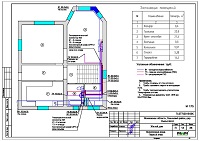 o Выполнен теплотехнический расчет отопления дома из кирпича (утеплитель стен и пола - плиты из пеноплекса 50мм, кровли - минеральная вата 100мм) с учетом теплопотерь через ограждающие конструкции при наружной температуре -28°С для Московской области (по СП 131.13330.2012), а также теплоотдачи помещений с теплым полом, расчетный расход тепла на отопление дома составил 22,06 кВт, удельные теплопотери 73,4 Вт/м.кв.;
