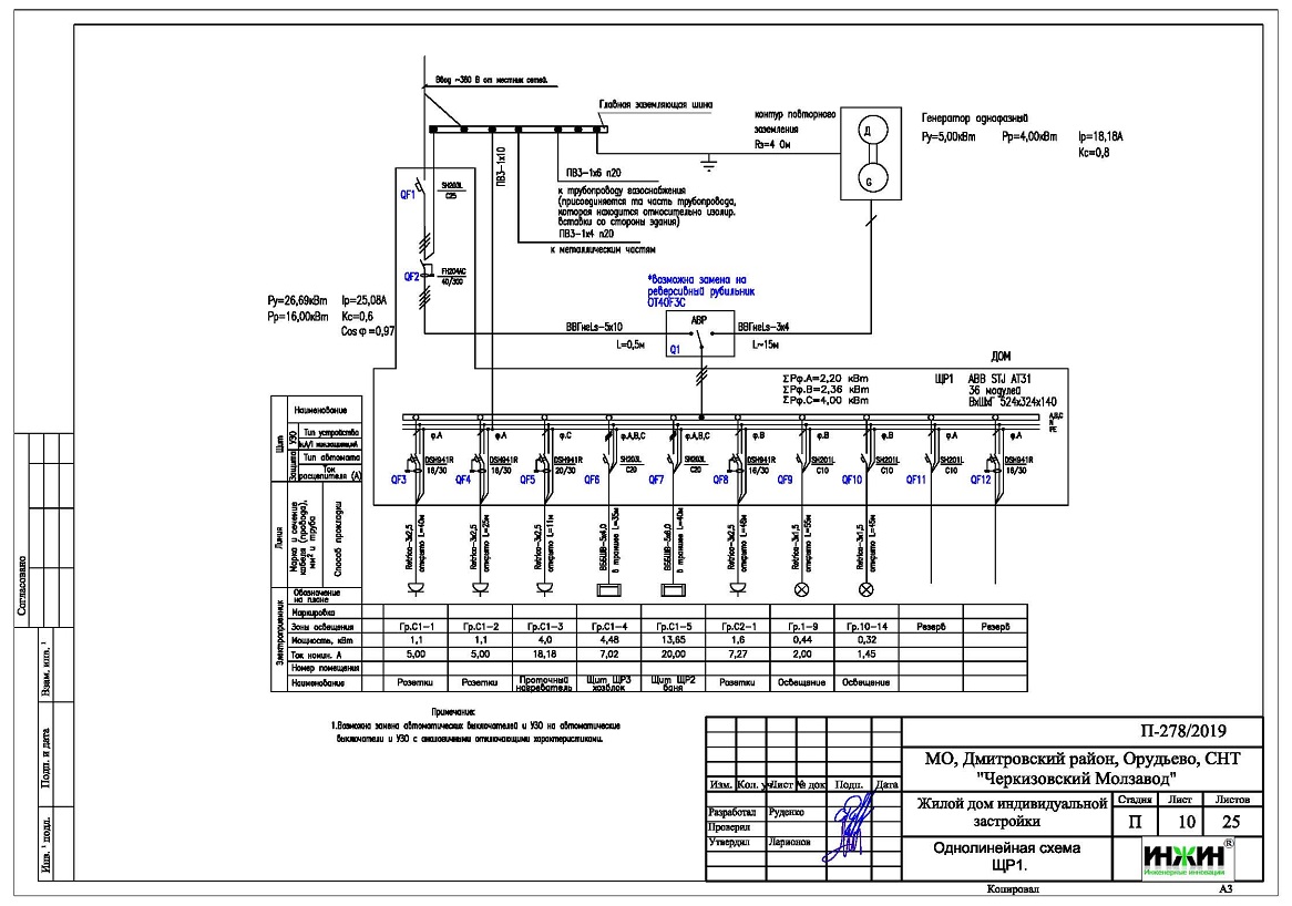Состав проекта электрики дома в СНТ "Черкизовский Молзавод":