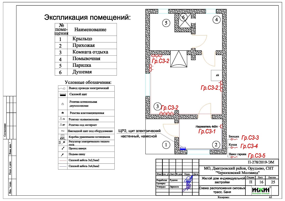 Объем проекта электрики дома с баней 131 м.кв.: 25 листов.
