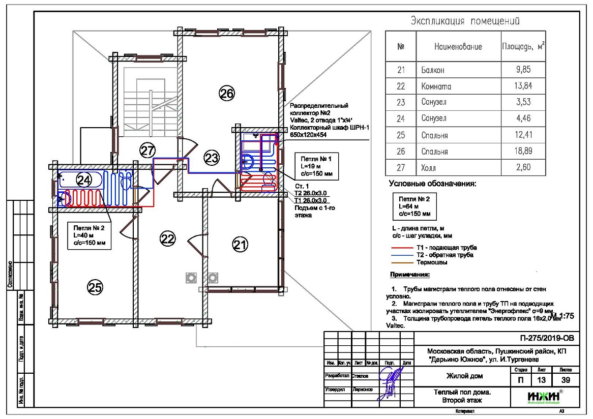 Водяной теплый пол дома в КП "Дарьино Южное" (проект теплого пола).