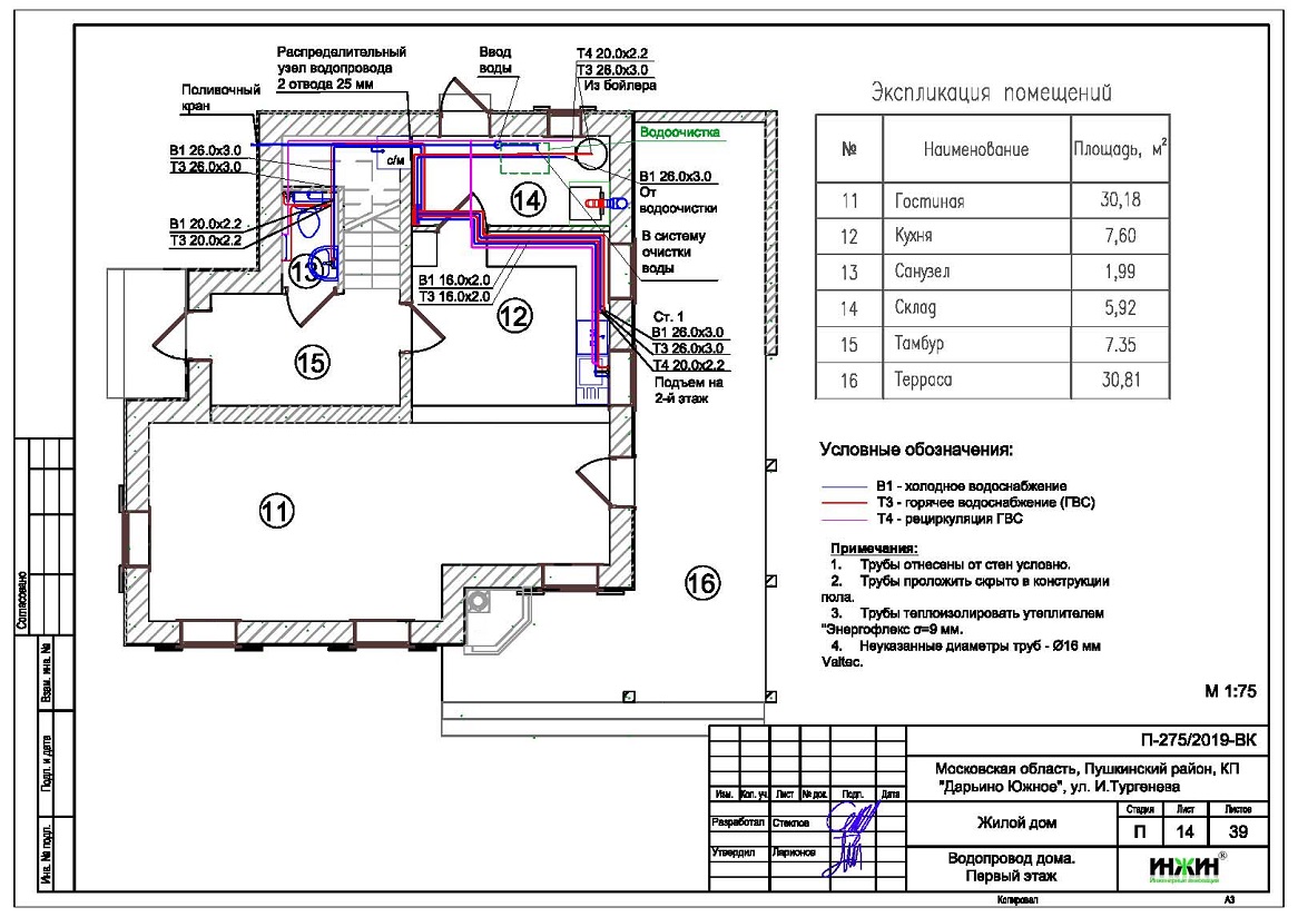Внутренний водопровод дома в КП "Дарьино Южное" (проект водоснабжения).