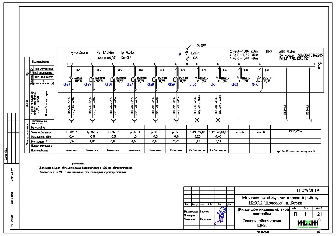 2. Однолинейные схемы вводного распределительного устройства и электрических распределительных щитов дома 350 м.кв..