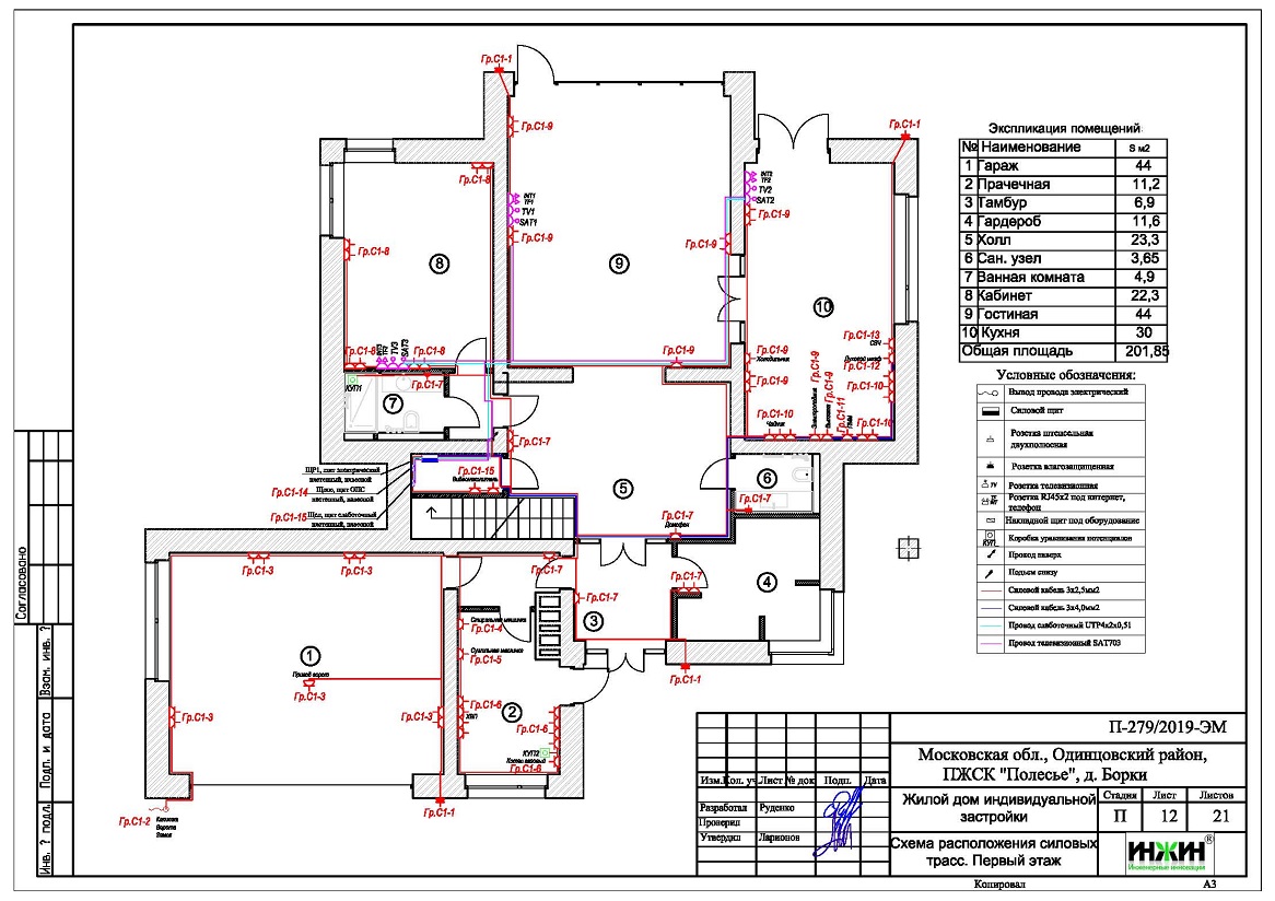 Объем проекта электрики дома 350 м.кв.: 21 лист.