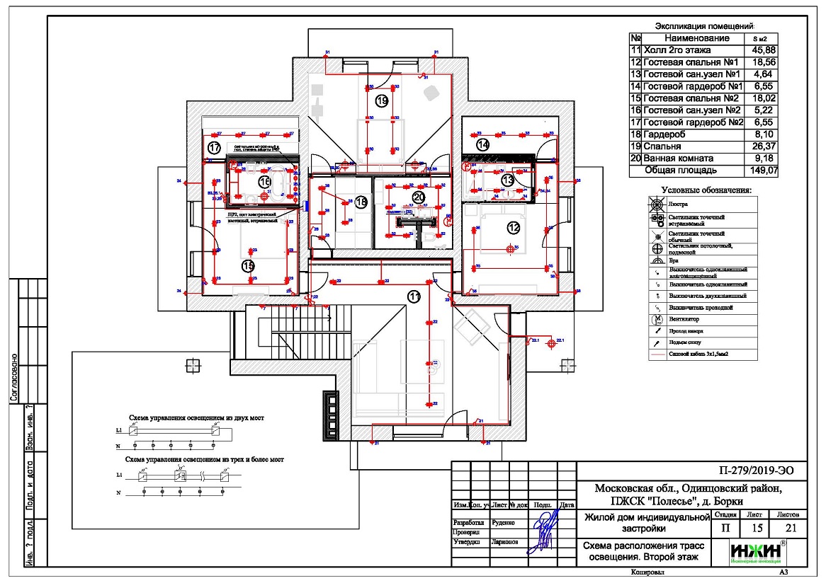 4. Чертежи групповых осветительных сетей дома в ПЖСК "Полесье".