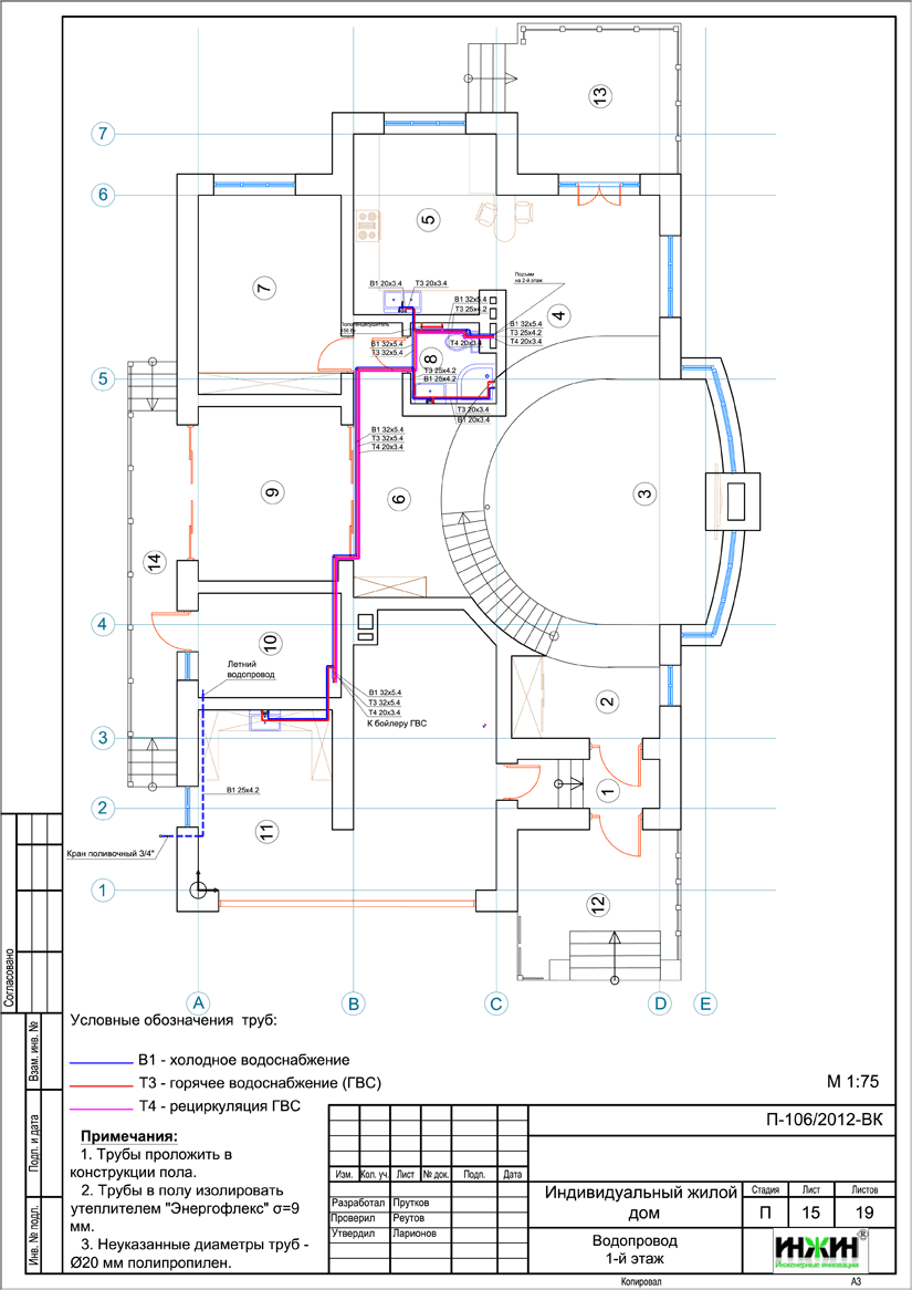 Проект отопления, водоснабжения и канализации выполнен: 07.11.2012