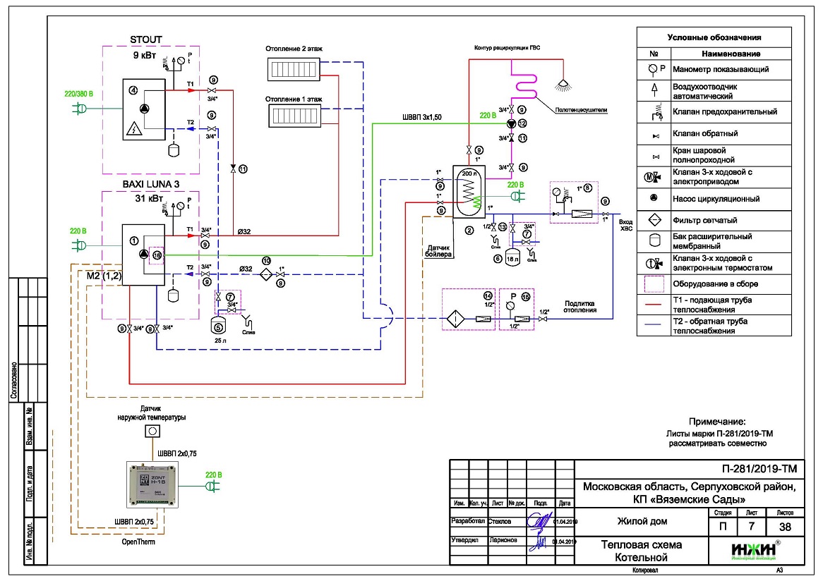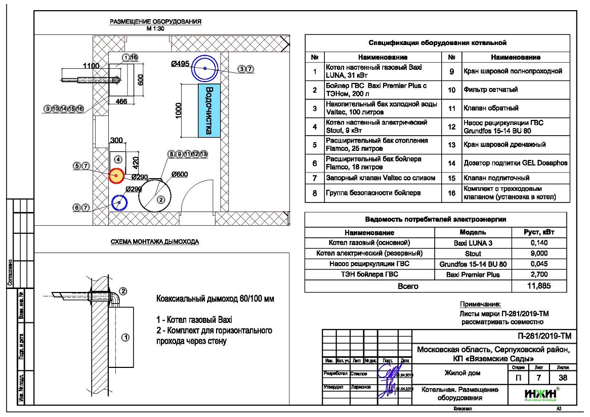Состав проекта котельной, отопления, канализации и водоснабжения дома в КП "Вяземские Сады":