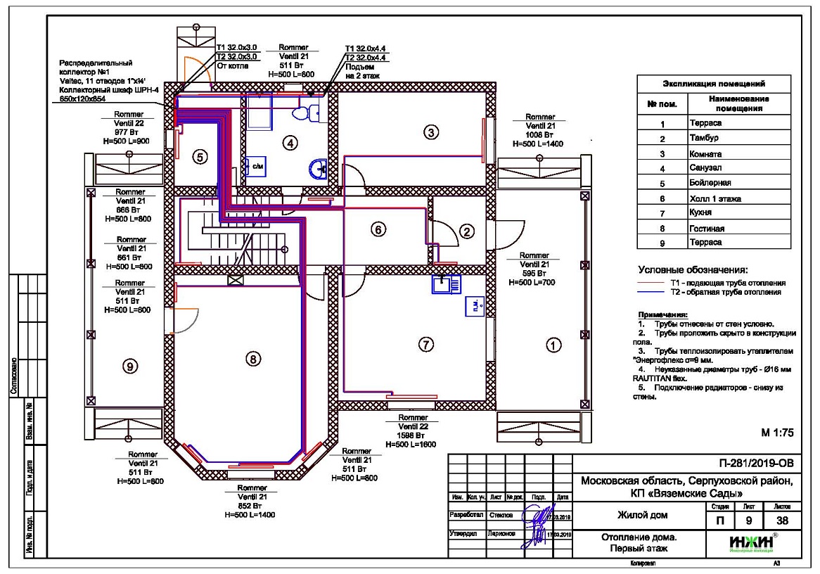 Отопление дома в КП "Вяземские Сады" (проект отопления дома).