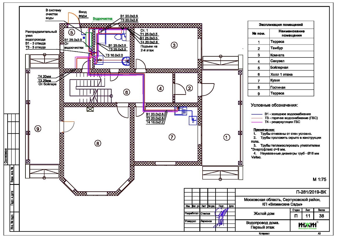 Внутренний водопровод дома в КП "Вяземские Сады" (проект водоснабжения).
